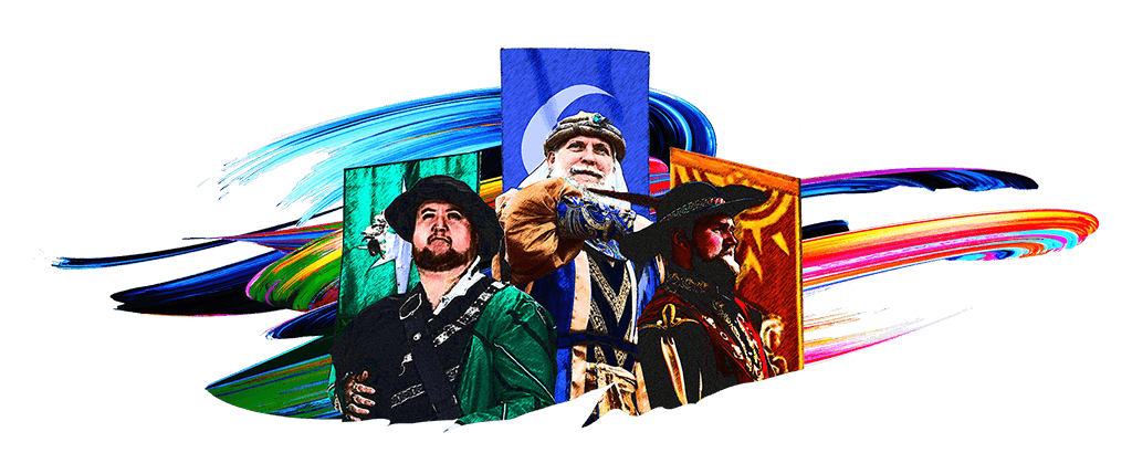 Witness the live sword fights play out before your very eyes. Just like weapons clash on the tournament board, so do the Barons and their entourages. There is enough thrust and parry, wit and steel to keep you at the edge of your seats.